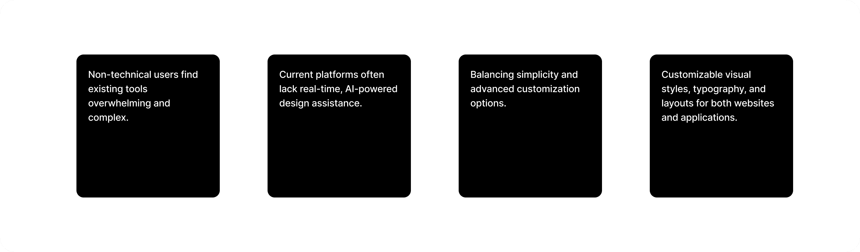 Building this AI-powered design platform has been a journey of discovery, problem-solving, and refinement. Throughout the process, I identified key user pain points, from current barriers to collaboration challenges, and worked to create a seamless, intelligent, and customizable solution.