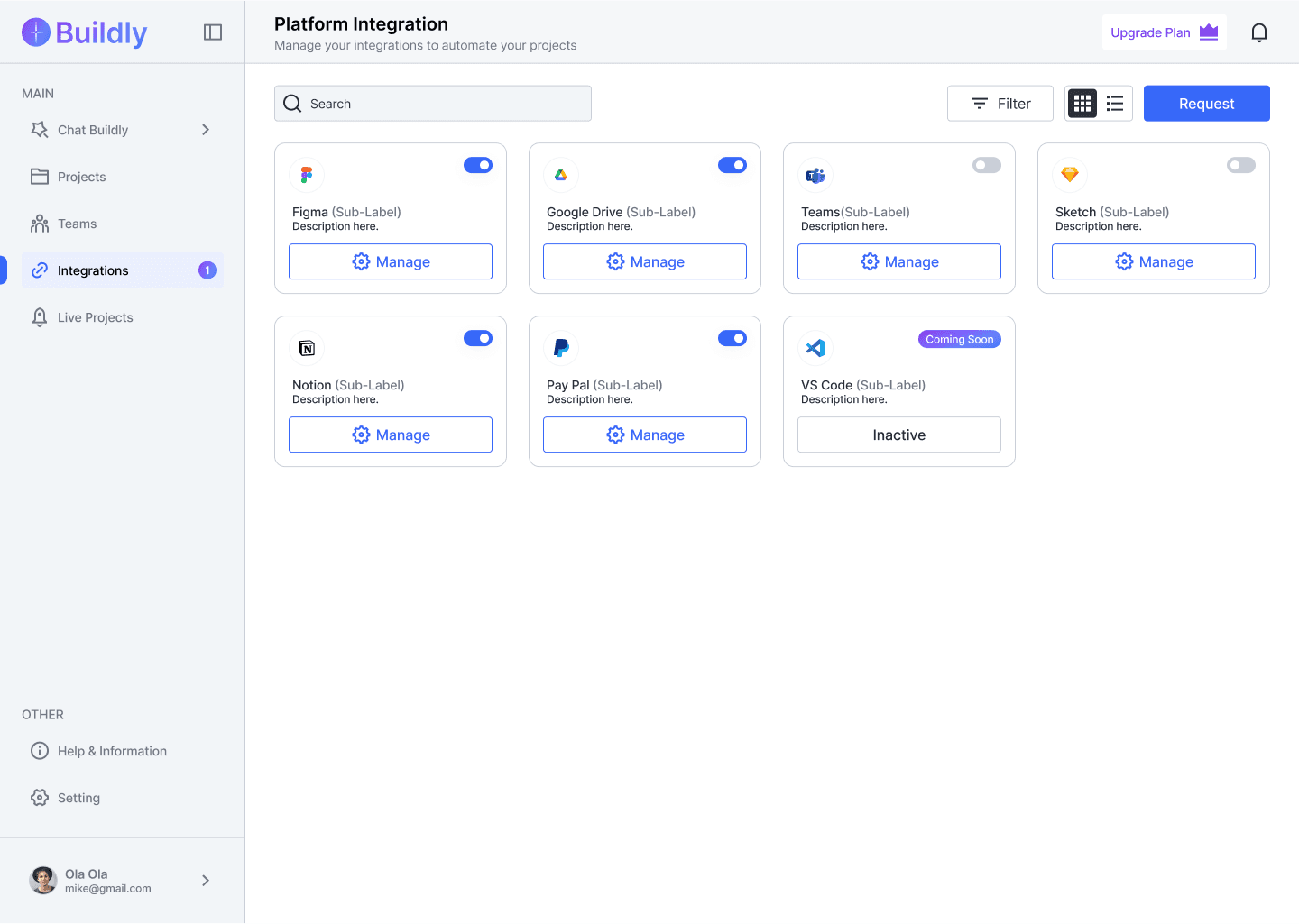 Get More features like List of Projects, Team, Live Projects, Platform Integrations and more..