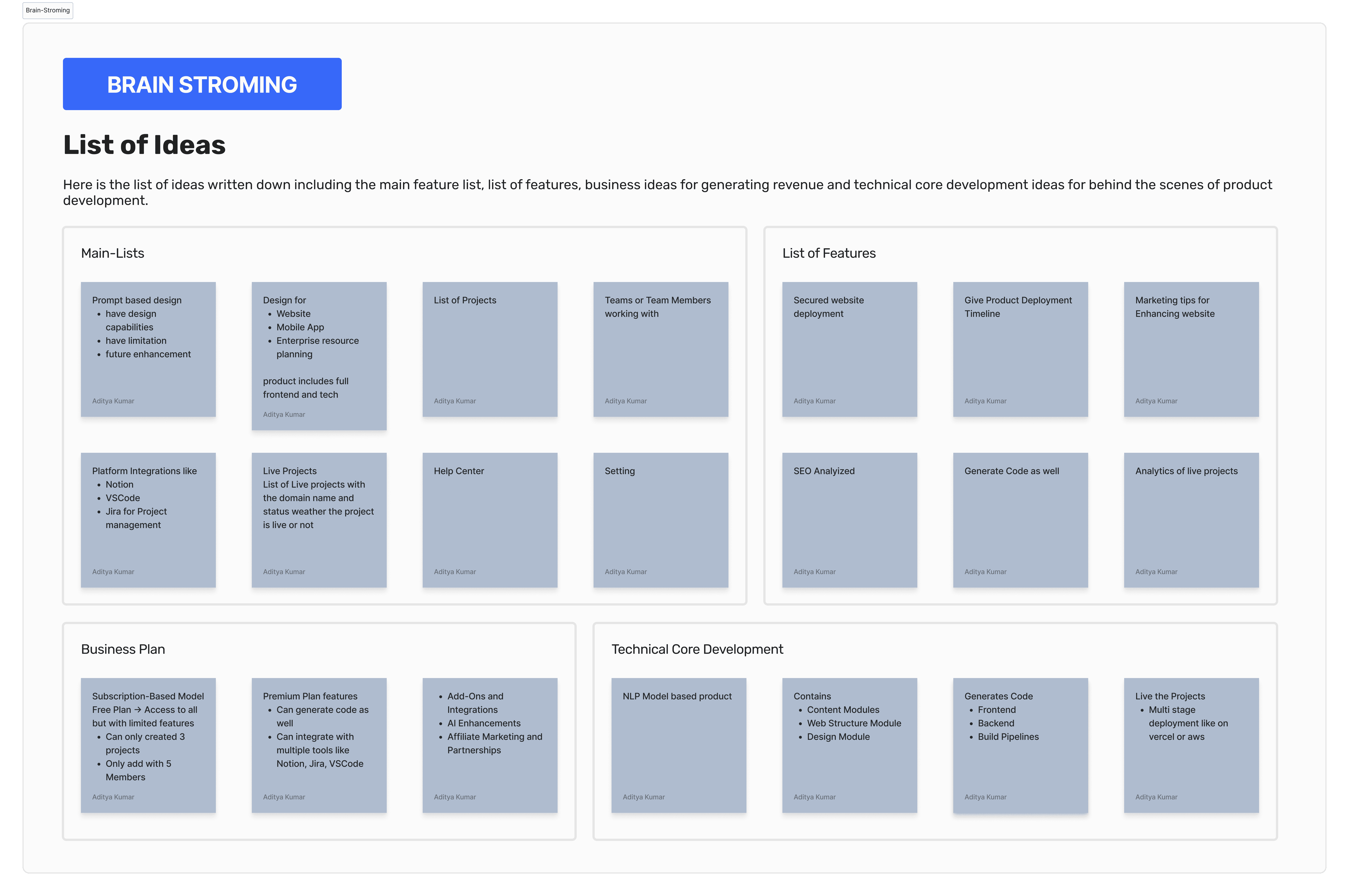 Now moving to the full fledged product with multiple core sections. To ensure a smooth user experience and plan the architecture and technical flow.