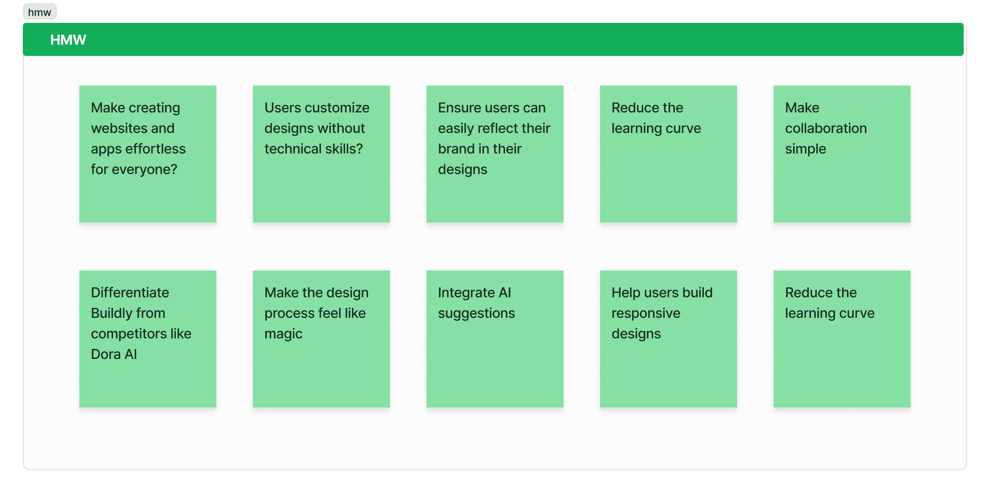 How might we create a platform that allows users to design websites and applications with minimal effort, leveraging AI while maintaining creative flexibility. Many existing platforms for website and app creation, such as Dora AI and Wix, cater to users but often fall short in one or more areas