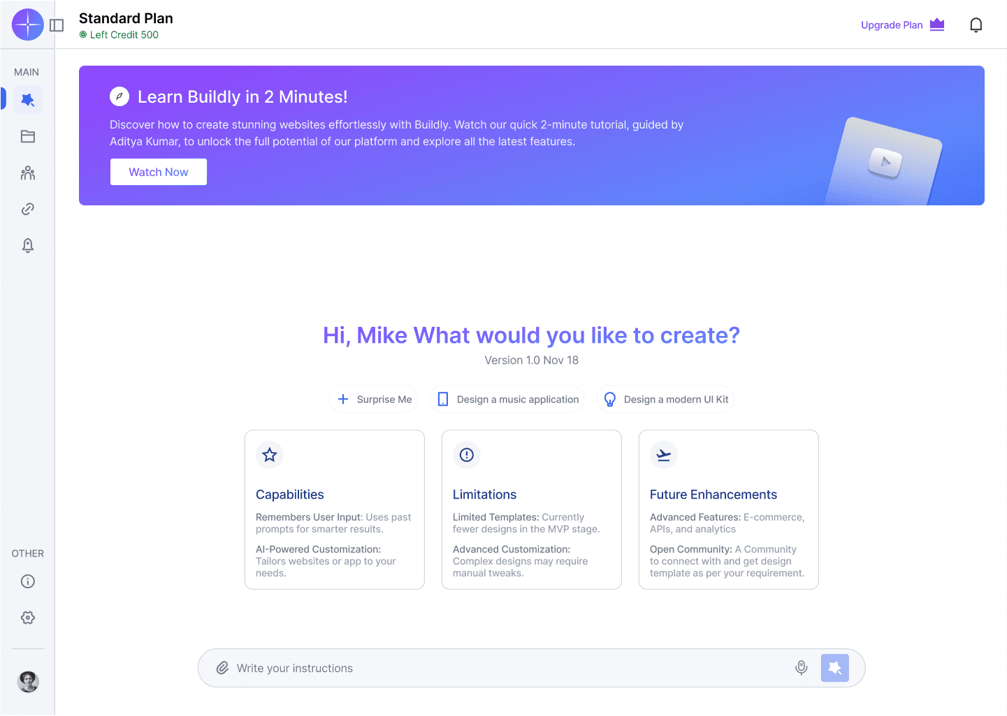 Buildly simplifies website and application creation by using AI-powered design tools to turn user prompts into fully customizable, professional-grade designs. By integrating an intuitive design system and seamless customization features, Buildly eliminates technical barriers, enabling users to create visually stunning outputs efficiently and with ease.
