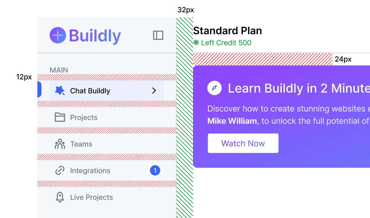 Using 4 pt spacing system starting from 4 and goes upto 84 and the spacing between the elements follows a consistent and usable design scheme.