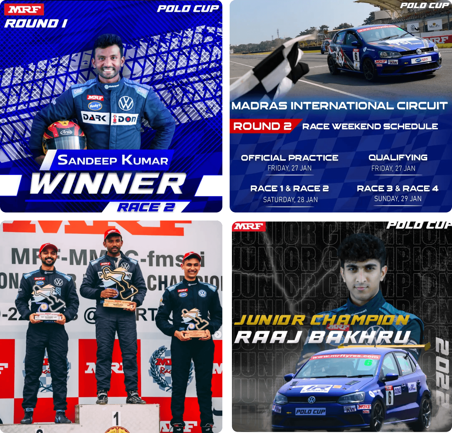 Volkswagen Motorsport India’s Polo Cup is a flagship platform for motorsport enthusiasts in India. The project focused on creating visually engaging content for their social media platforms to increase audience engagement and boost registrations for future championships. The challenge was to strike a balance between Volkswagen’s sophisticated design ethos and the excitement of motorsport, ensuring global appeal while maintaining brand elegance.